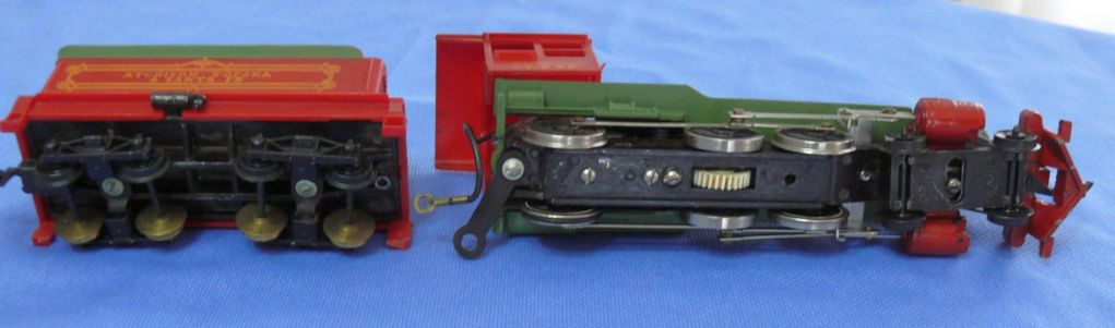 There are no makers marks on the subject HO scale 4-6-0 that I can find. It has a die-cast chassis, open frame motor & plastic upper body shell. Plastic tender shell with die-cast frame & a rectangular 'waffle' iron patterned weight in the bottom of the tender