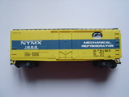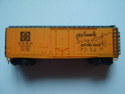 Both are AHM, the second car might have been sold under the Model Power label as well. Botz cars are made in Austria, the yellow NYC is Liliput (Vienna), the AT&SF with separate ladders is from Roco (Salzburg).