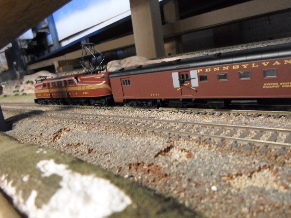 The steam engine you saw in October 13 post was manufactured by Bachmann Industries under their Spectrum Division Kris. This next view show Penn Central metroliner units at a stop in Tyrone Pennsylvania during a weekday run.