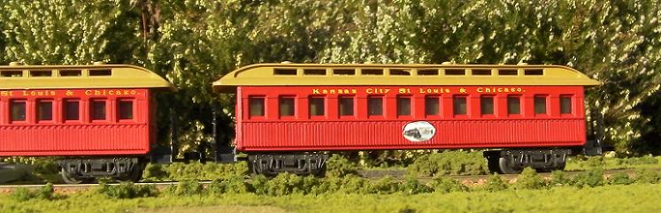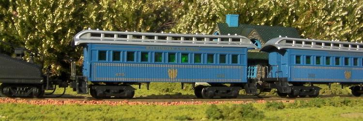 Consolidation type locomotive built in 1916 by Baldwin Locomotive Works. First of five passenger cars built in 1911 by Pullman Company.