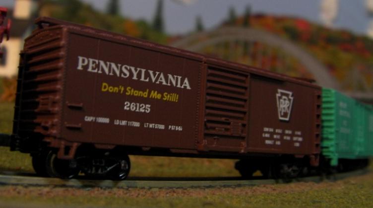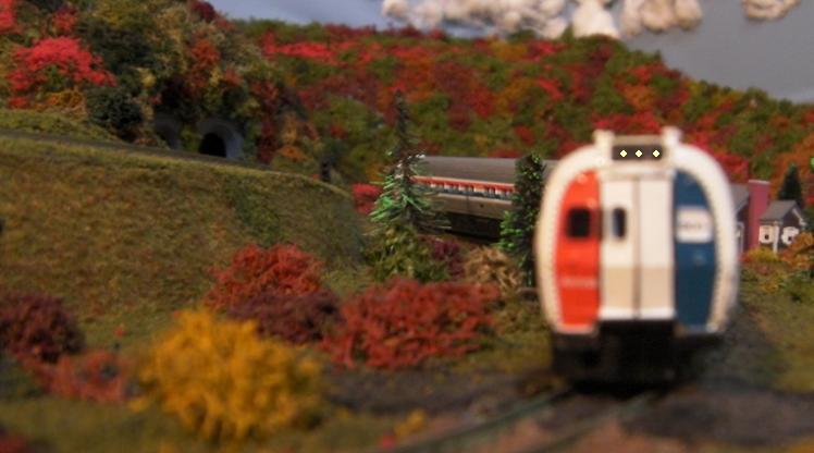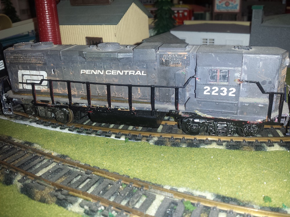 Fortunately Penn Central thrives in this alternate universe Jeff. They are well respected throughout the land. One of their improvements show that they purchased some old New York City subway cars and rebuilt them as solar powered units for use in various communities. We visit one such area to see them in action with their splendid colors.