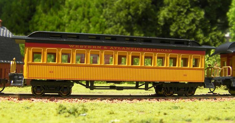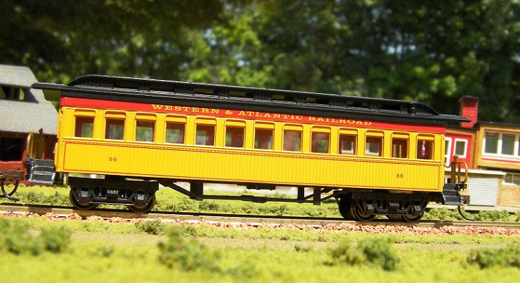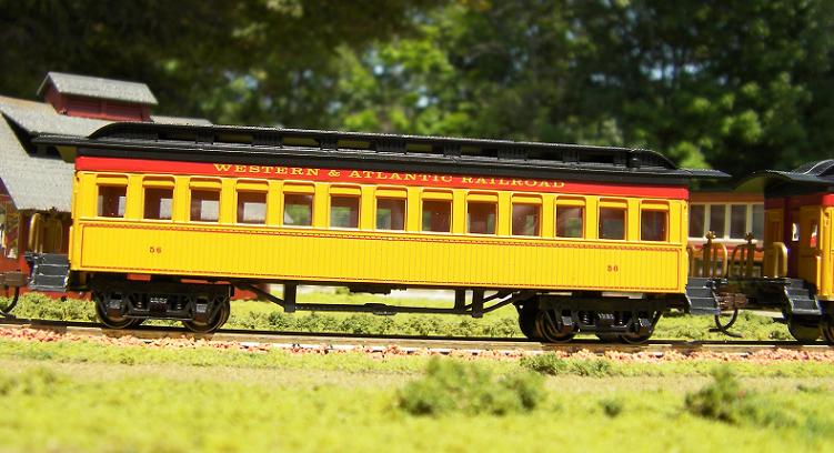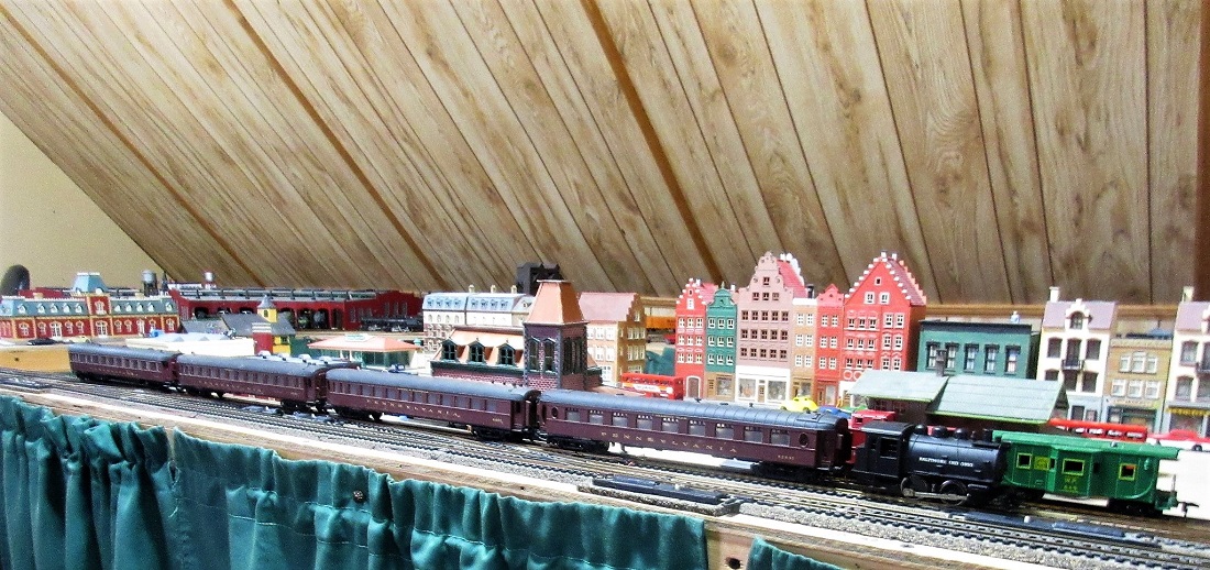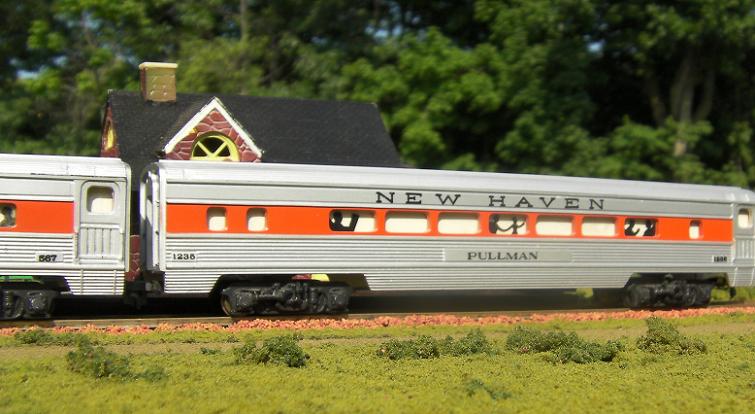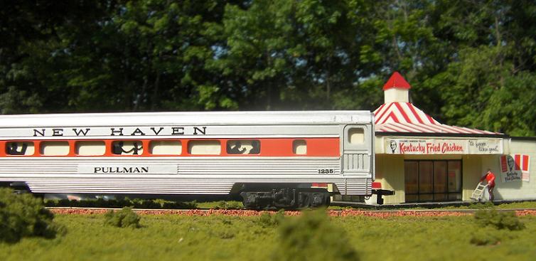 * A very different passenger set of the Pennsy is seen here. Four 70 foot cars, all Pullman built. Made in France under license of the Pullman Company, then imported here by the Pennsy. This is a special luxury train used on the Chicago run. All First Class Cars make up this train set. A 0-4-0t was used to position the train at it departure Depot at Bergen Point. This train brings European luxury to the American Railroad Scene. frank