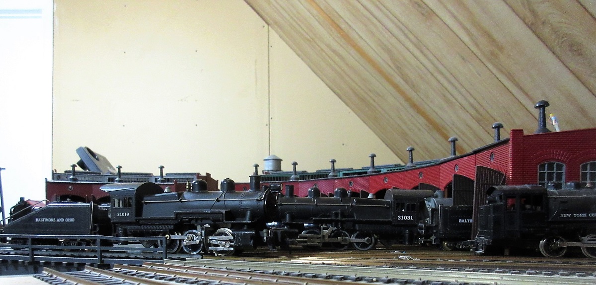 I observed some action around the Frankford roundhouse at Bergen Point a few days ago. Some Pennsy built 0-6-0 switches were moved about. From service tracks to roundhouse stalls. What caught my eye was that they weren't Pennsylvania Railroad locomotives but Baltimore and Ohio ones. Loco numbers were 31019 and 31031. Here are a few photos. Snoopy.