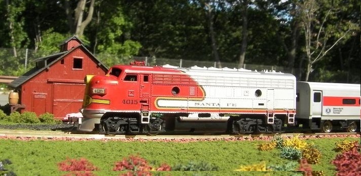 Nice view of the equipment Frank. The cars you saw Ben were made by Tyco Mantua Industries. These next views show a Long Island Railroad set in action on another very hot summer day.