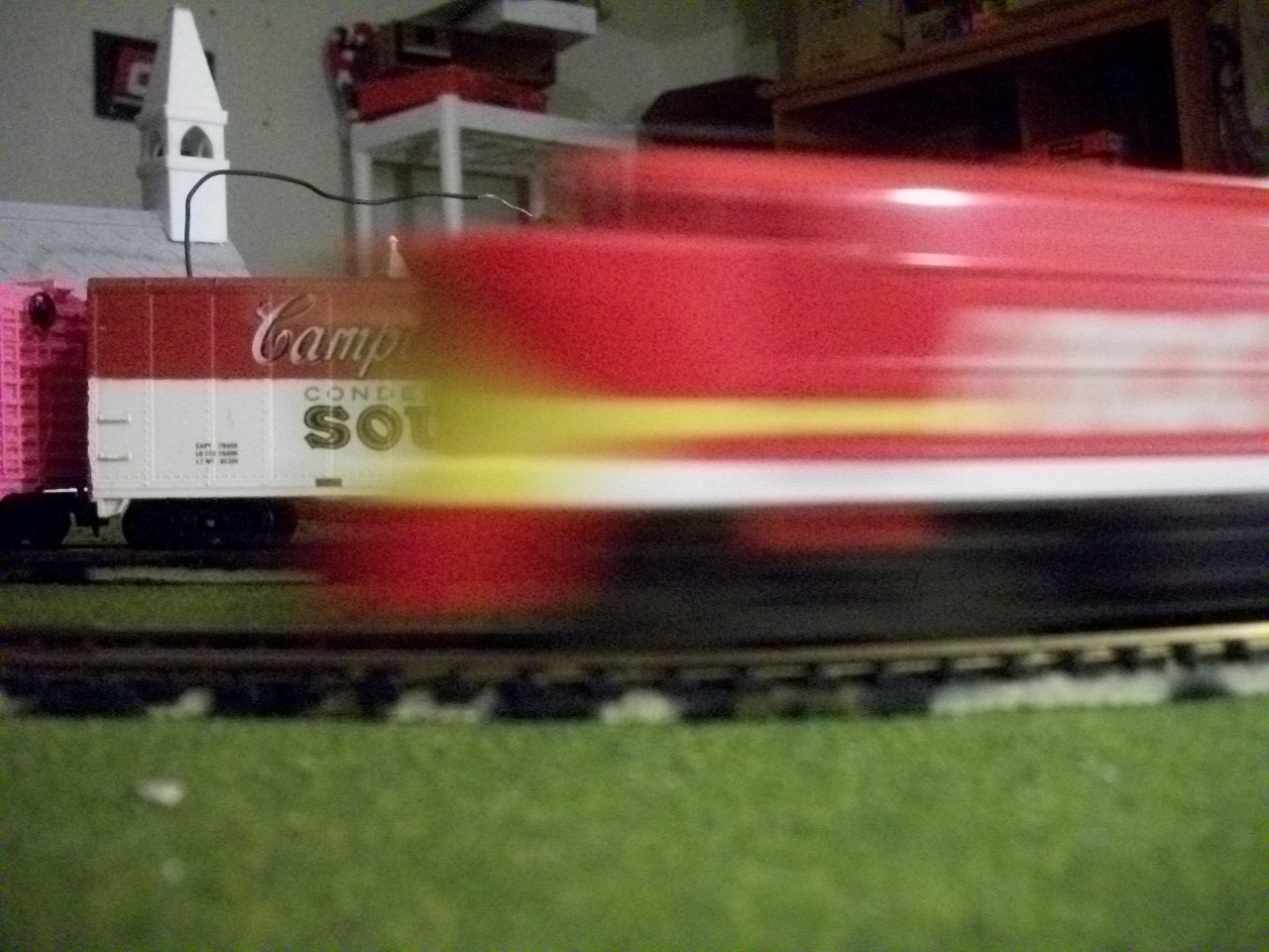 A Rock Island Shark breezes past a Campbell's Soup Car East of Odgen.