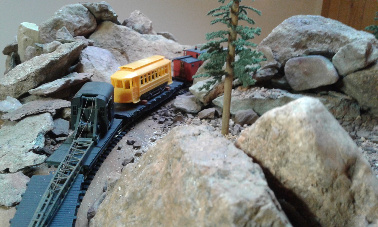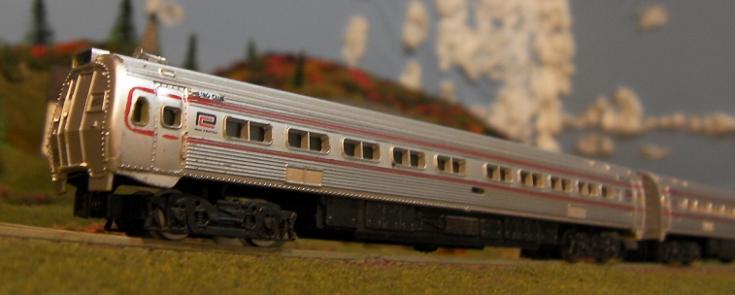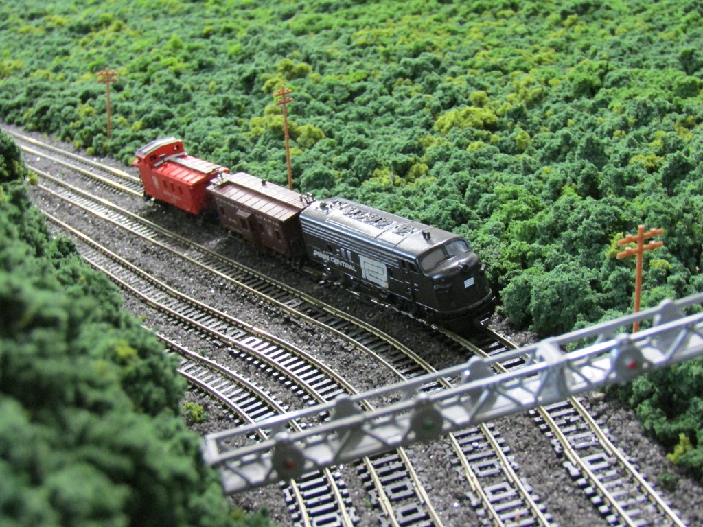 For the Horseshoe Curve Weekly that I just posted on my website (http://rputnick777.wixsite.com/horseshoecurveline), I decided to take a video of action on my N-Scale layout entitled "The Horseshoe Curve Branch Line." Specifically, it is a video of the PRR's "Mountain View" passenger train, led by an E8.