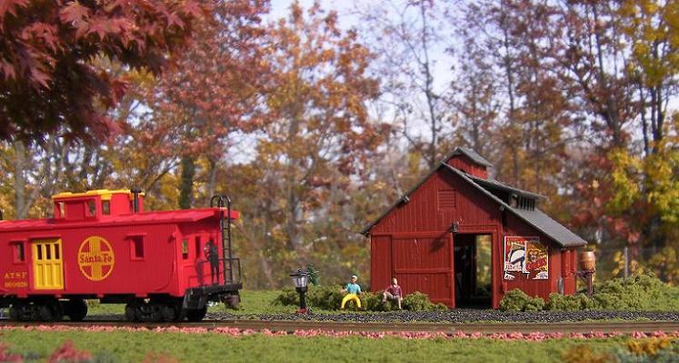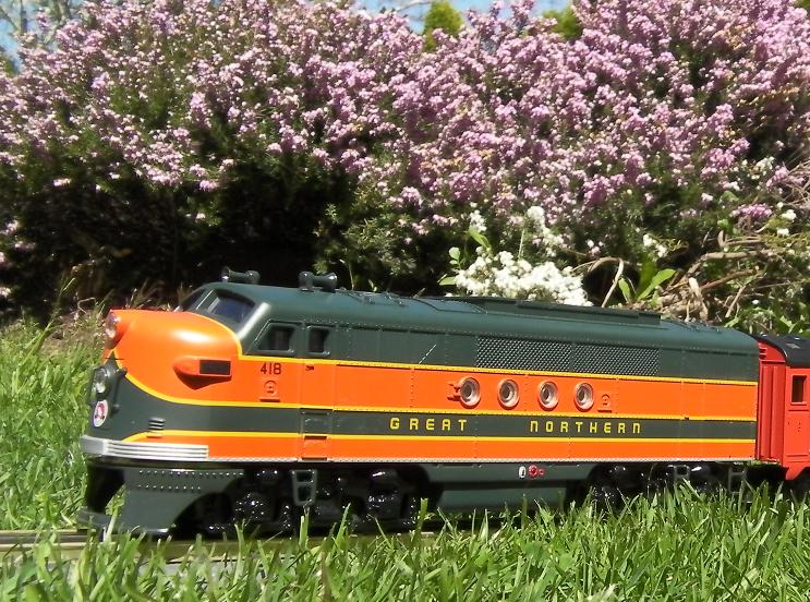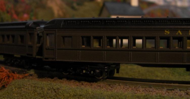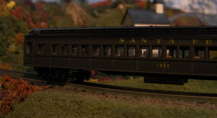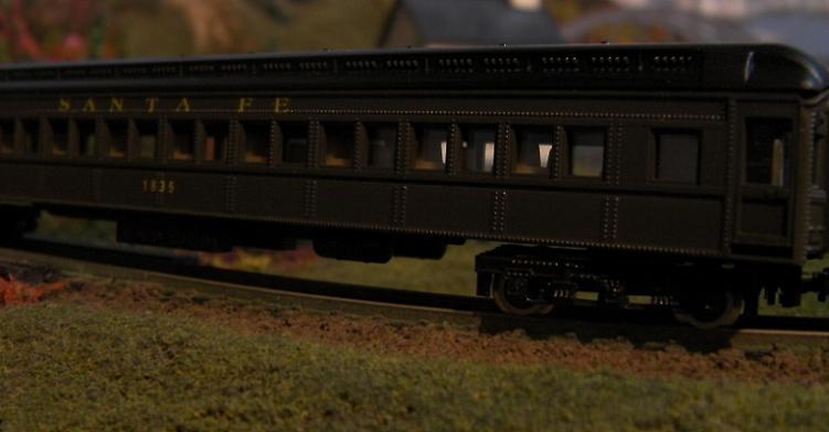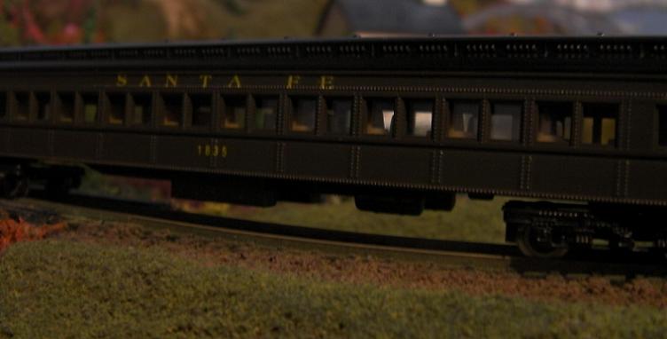 Awesome Tyco Santa Fe passenger set! The photos are taken at a VERY prototypical angle and the natural tree background enhances the scene. Nice!