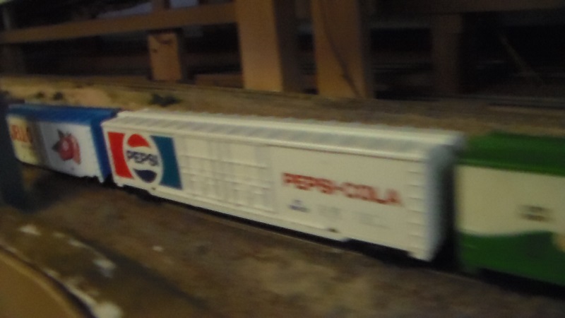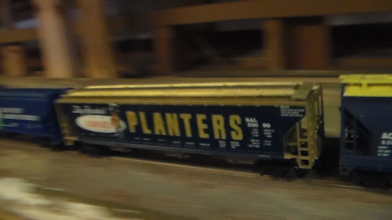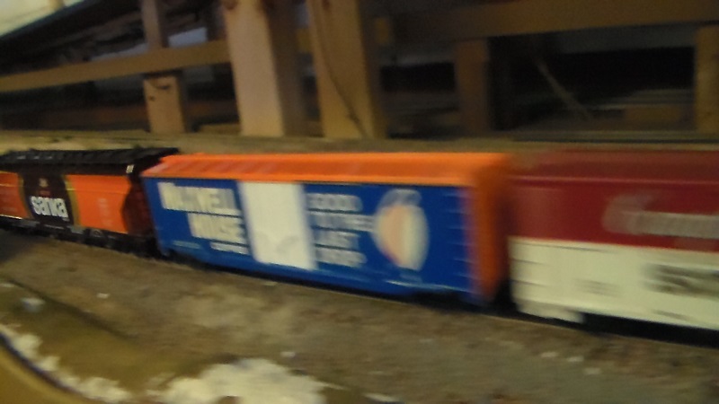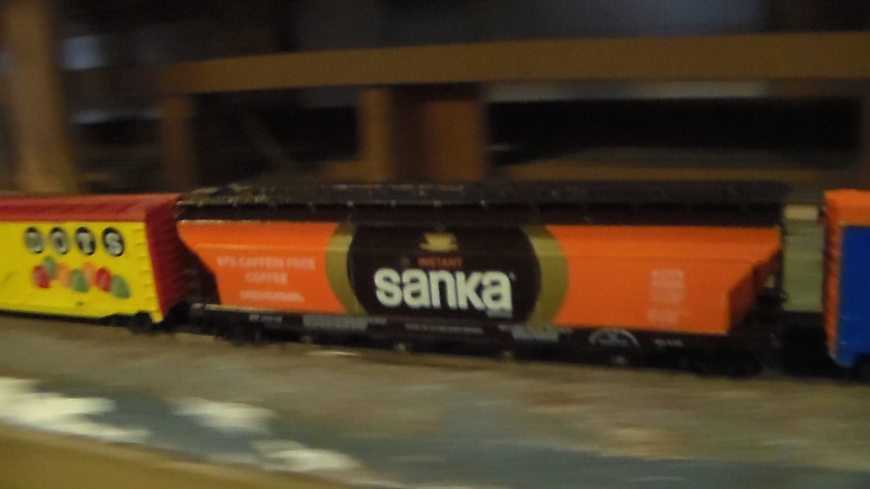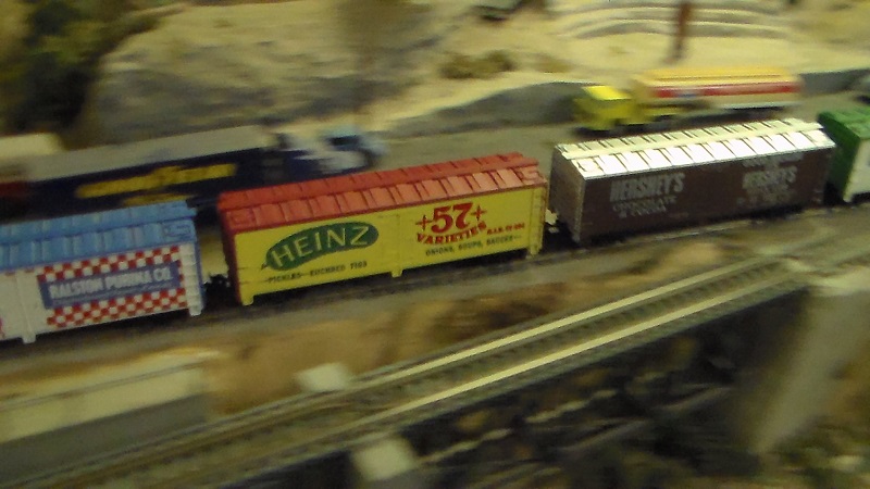 Car with more canned goods blocking traffic waiting to be moved to passing siding in Springfield Illinois.