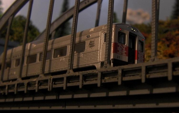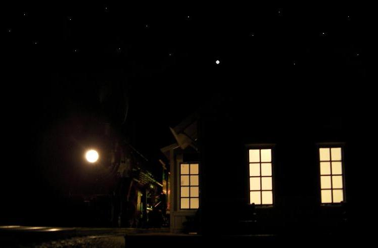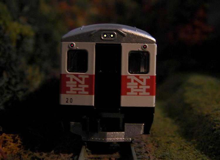 A starlit night, and one of my favorite roads of all time, the NYNH&H. Here a former ATSF Tavern coach picks up weary commuters bound for Long Island.