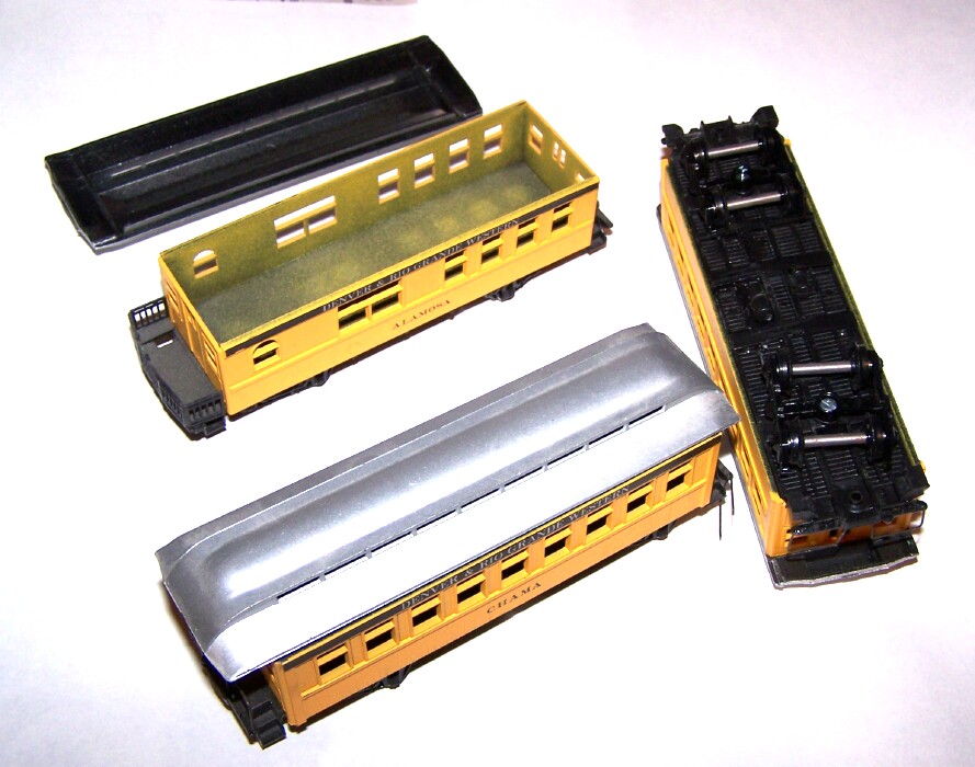 Just got these from a guy on Ebay who was switching to Lionel from HO. He had mostly non-tyco stuff. Not sure who made them, no markings whatsoever on the bottom. Model Power has green windows, these have none. These appear shorter, and have coupler pockets built in for Kadee's, not truck-mounted couplers. Tops come off easy, not glued on, so makes me think they might have been a kit like Walthers, Athearn, etc.