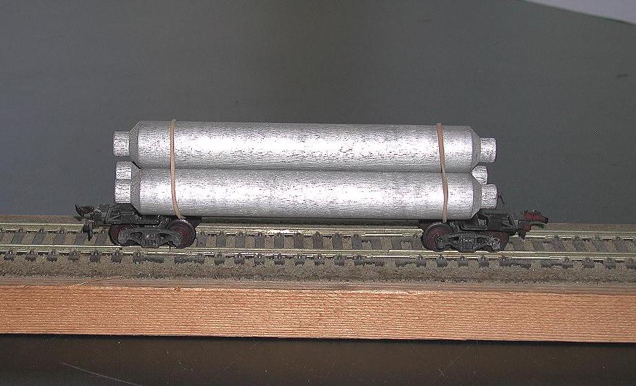 While discussing the AHM Helium Cars On another thread. I remembered The Lionel Version. This was cataloged 1961-1962 #0809 Helium Tank Transport Car. It was the Hopper Car Frame with 3 wood dowels painted silver. Held on by 2 rubber bands..