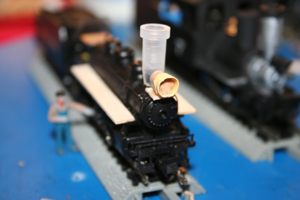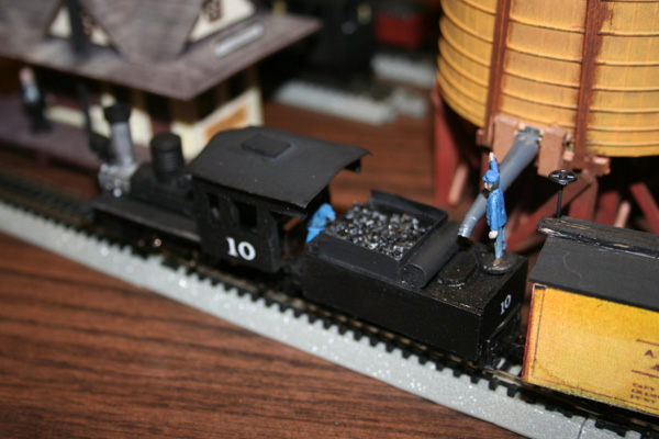 Here the head end brakeman fills the tender at Plasticville: