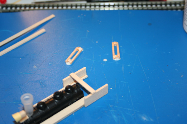 The next step was adding the cab sides, and figuring out clearances with the tender. The tender needed to be cut back to allow the cab to swing and provide a place for the fireman to stand.