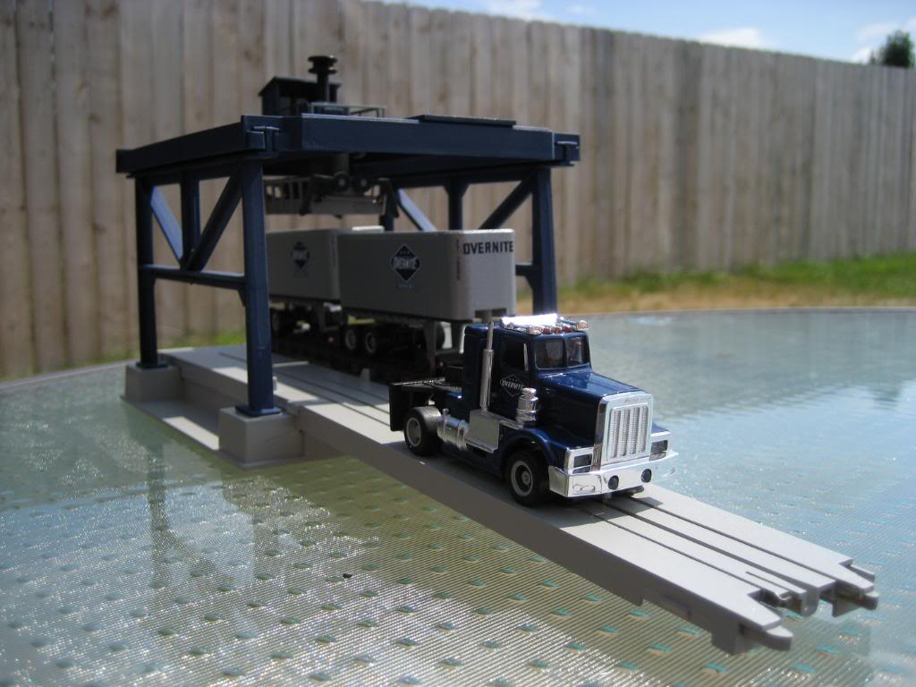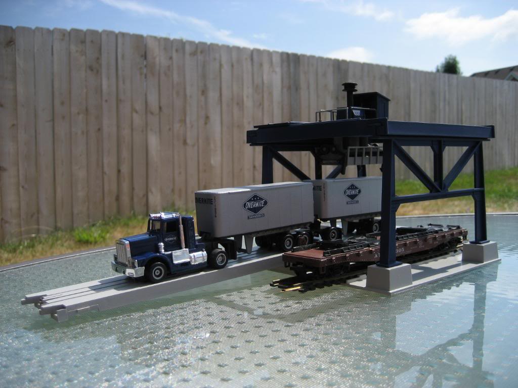 Not sure if I want to paint and weather the piggyback loader yet. Tony's loader looks really nice here- http://goingincirclez.com/TycoTrains/Guide/1 I think I'll paint mine and add an Overnite logo to it. Leave it kinda new looking.