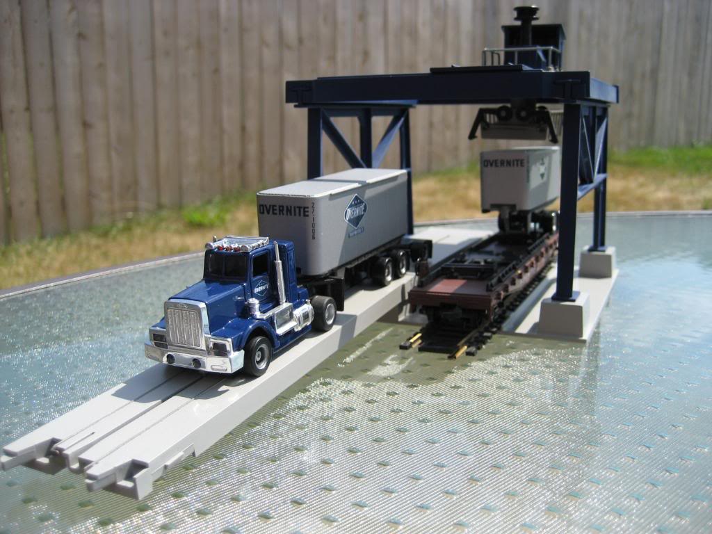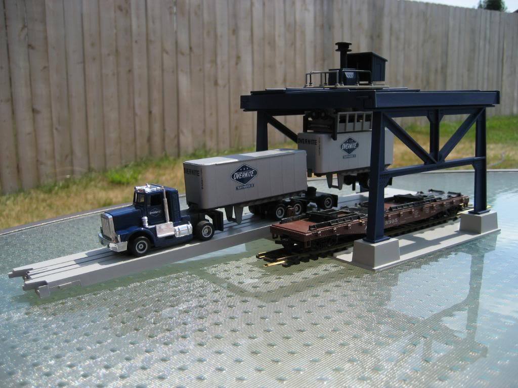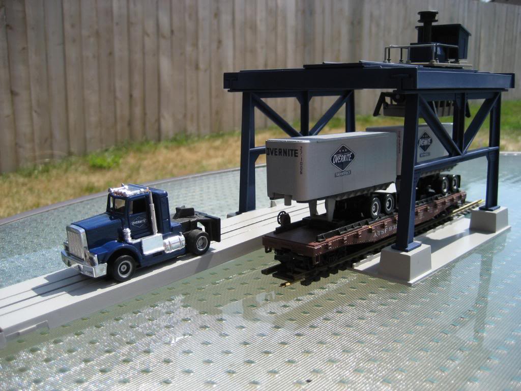 I'm kit bashing a TYCO piggyback loader, a flat car, a couple of US1 trailers, and a section of track to make a loader that loads US1 trailers onto track