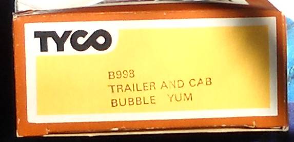 Dear waltjenny, TYCO TRAILER & CAB BUBBLE YUM #B998 NOS MINT IN BOX i can offer you this on a second chance the first person lost his job and we cancelled the aution, let me know if you are interested thanks - bellhobbys
