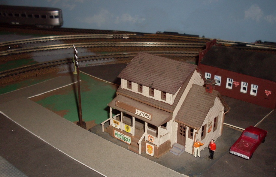 This BOTW thread isn't getting much action, so I'll do what I can. Here's a great little kit from Life-Like, it's the general store. Nevermind the broken sign. I think someone's telling a fish story out front:
