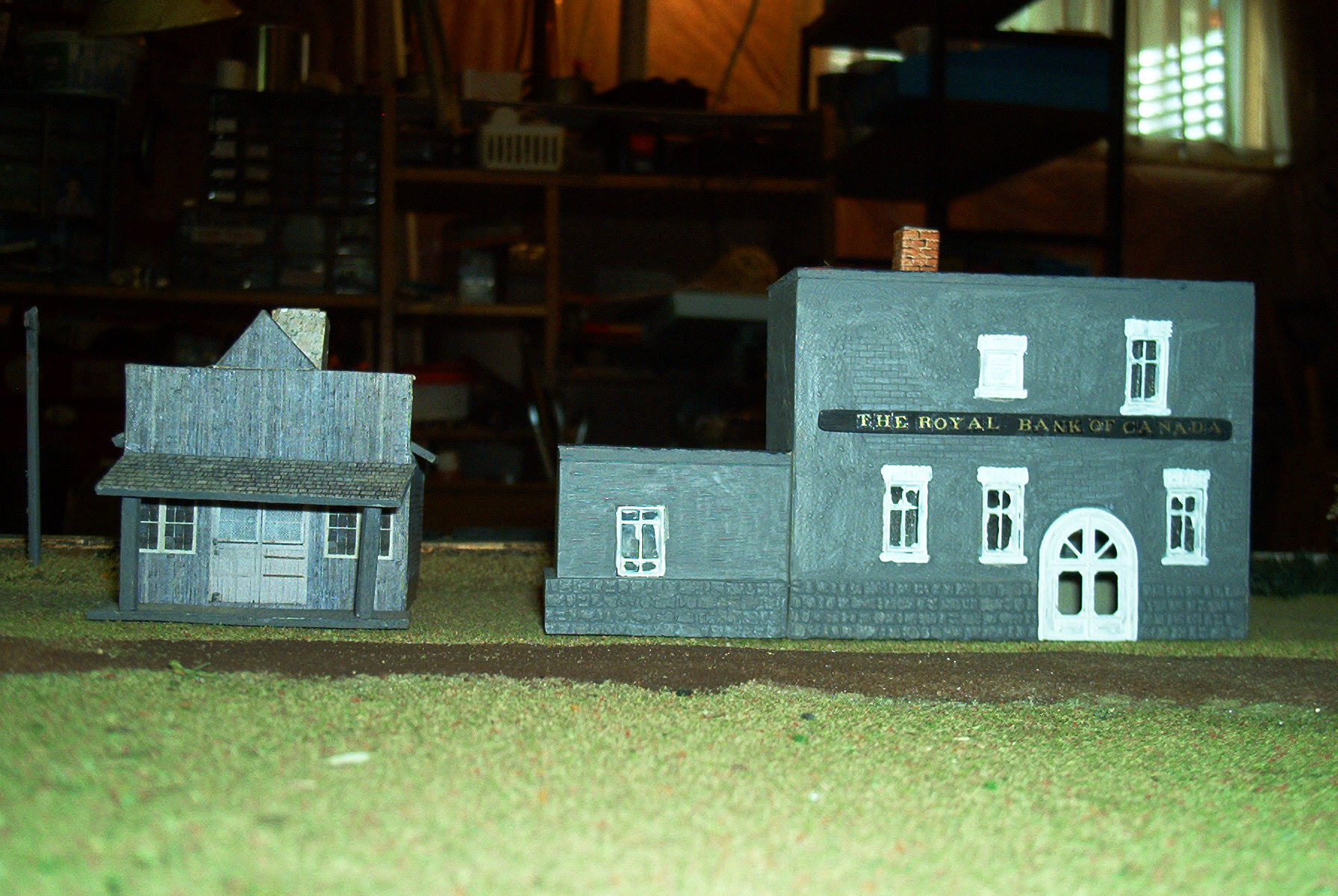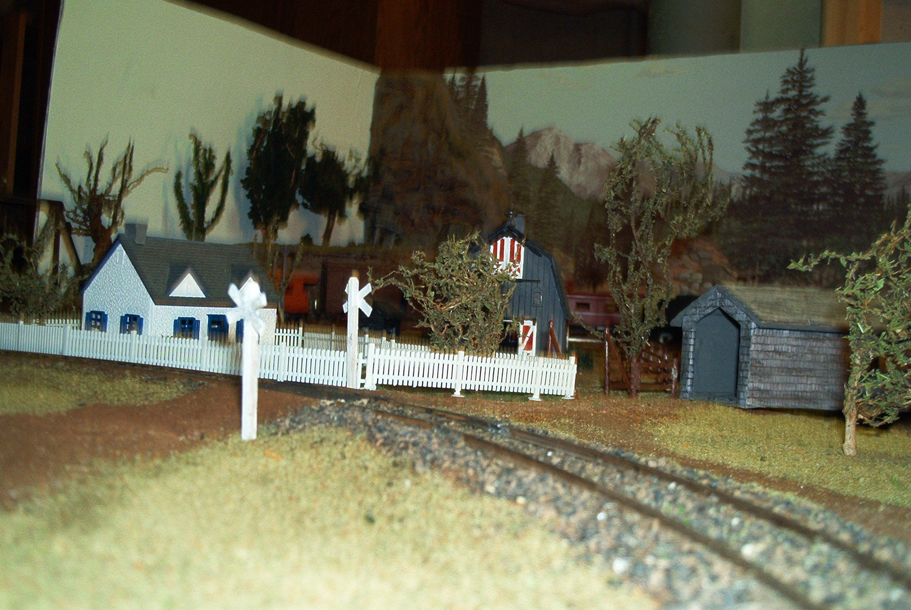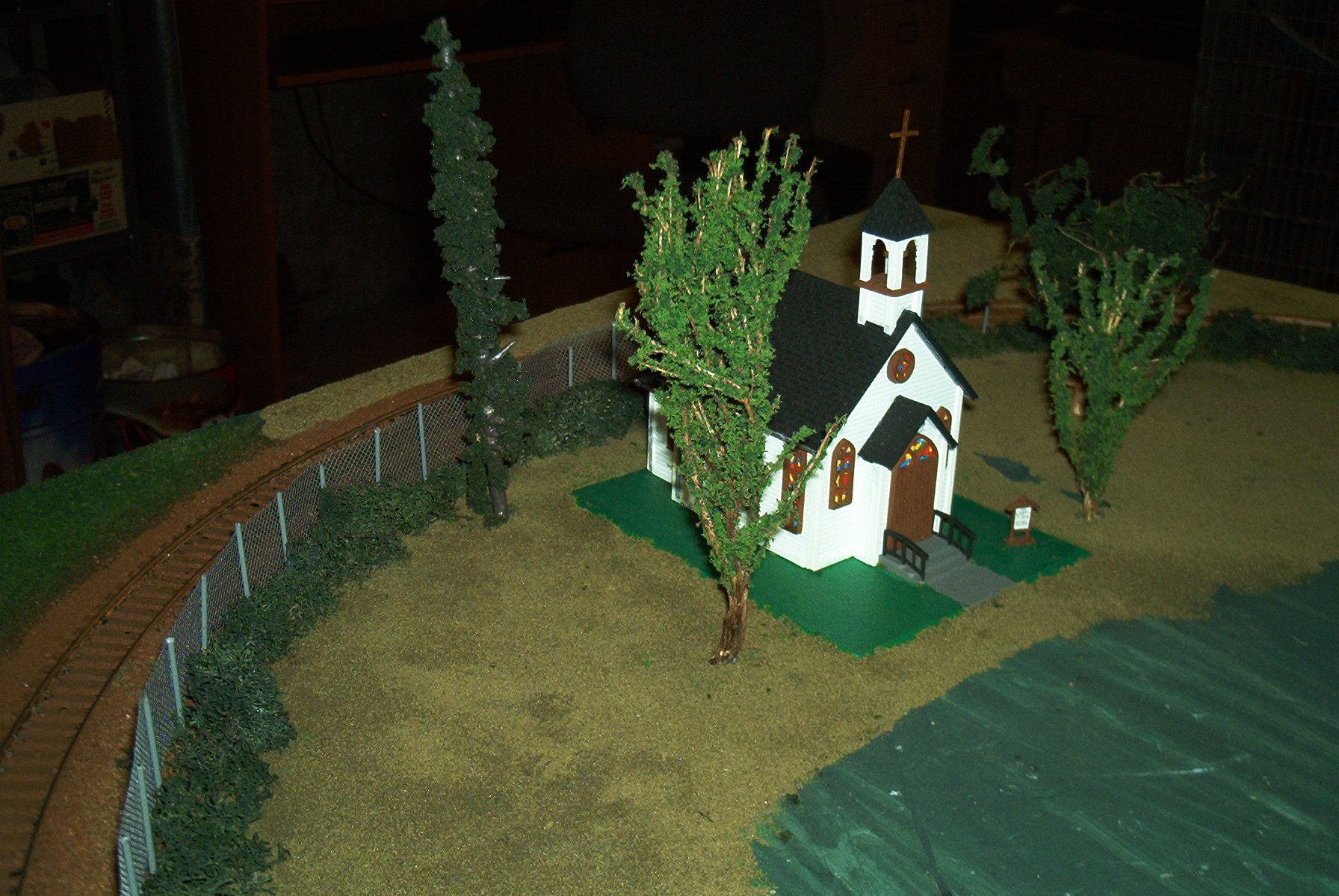 I should have said white glue and water with a few drops of dish soap. The roots are from my wifes herb garden. I dried them soaked them in the glue and water then sprinkled then with dried sage next I sprayed then with a sealer. The road way are tea leaves. I'm retired and need to spend as little as I can so I put in the thinking light and came with all kinds of thing. I am working on a working windmill as seen on the older farms years ago. I look to have it done soon. I am powering it with a mini airplane motor and transmitter so far it seems to be working but need to make a few changes. I will post a picture when I get it done. FIDDLEHEAD RAILWAY CO.