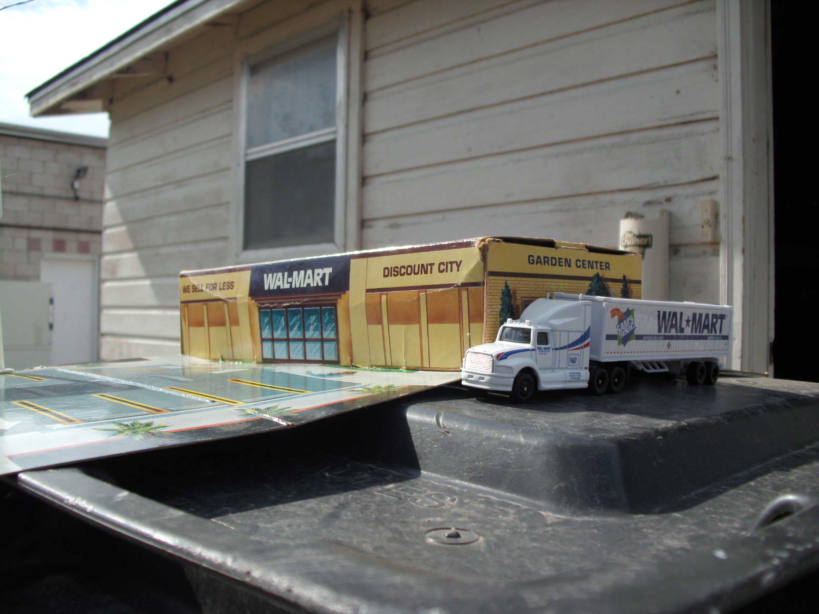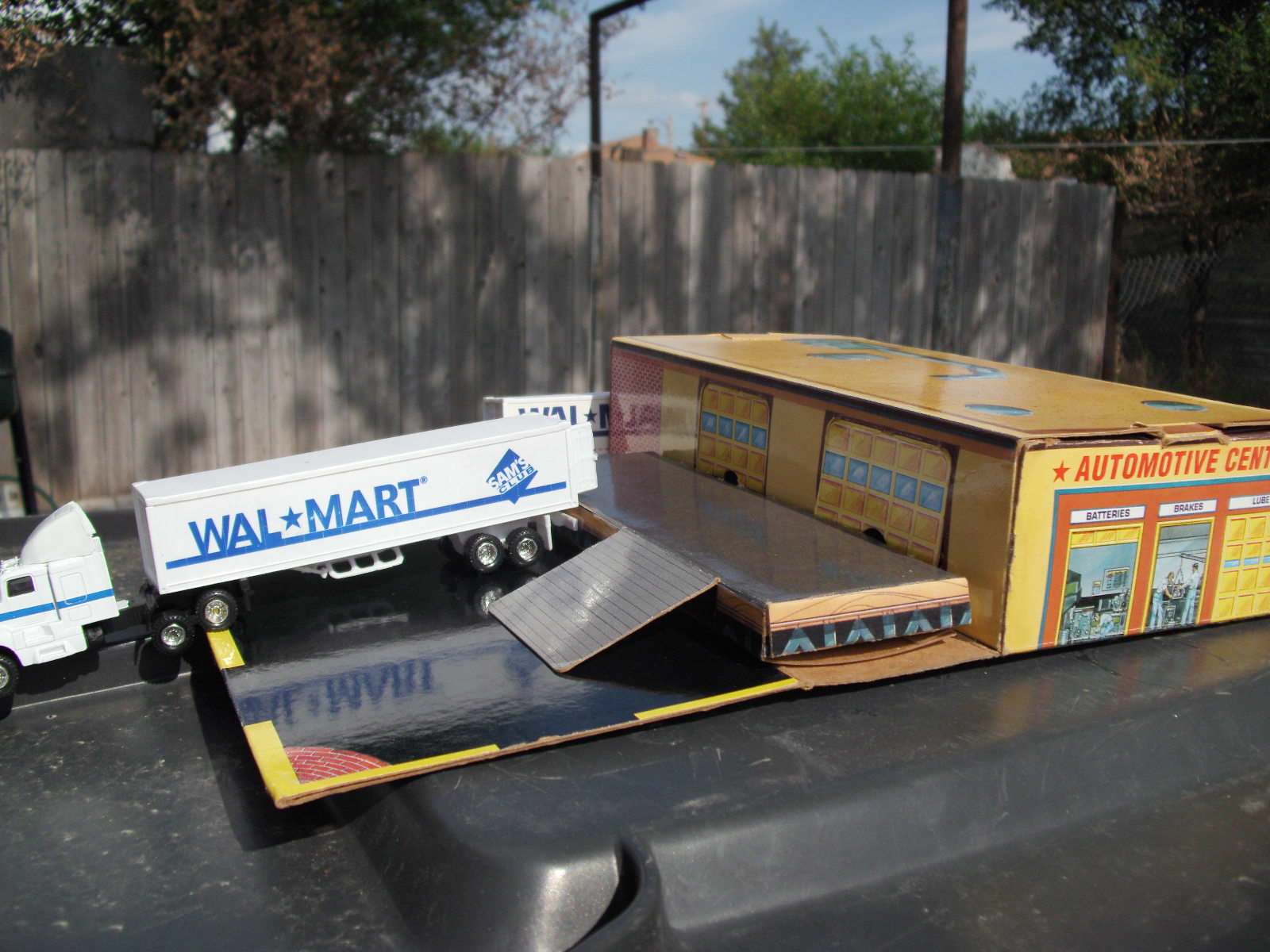 & just for fun I'll load up the Hot Wheels Wal*Mart playset with WM trucks