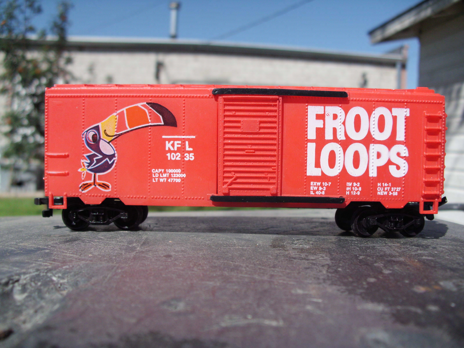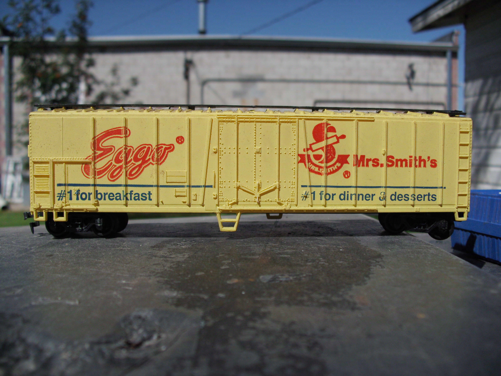 MicroBen & Dumpster-Cam has turned this topic into CARS of the week! Nice pics Ben! A lady on Ebay gave me the EGGO car as a gift when I bought a bunch of HO stuff from her. My wife got me the LL Fruit Loops Box car.