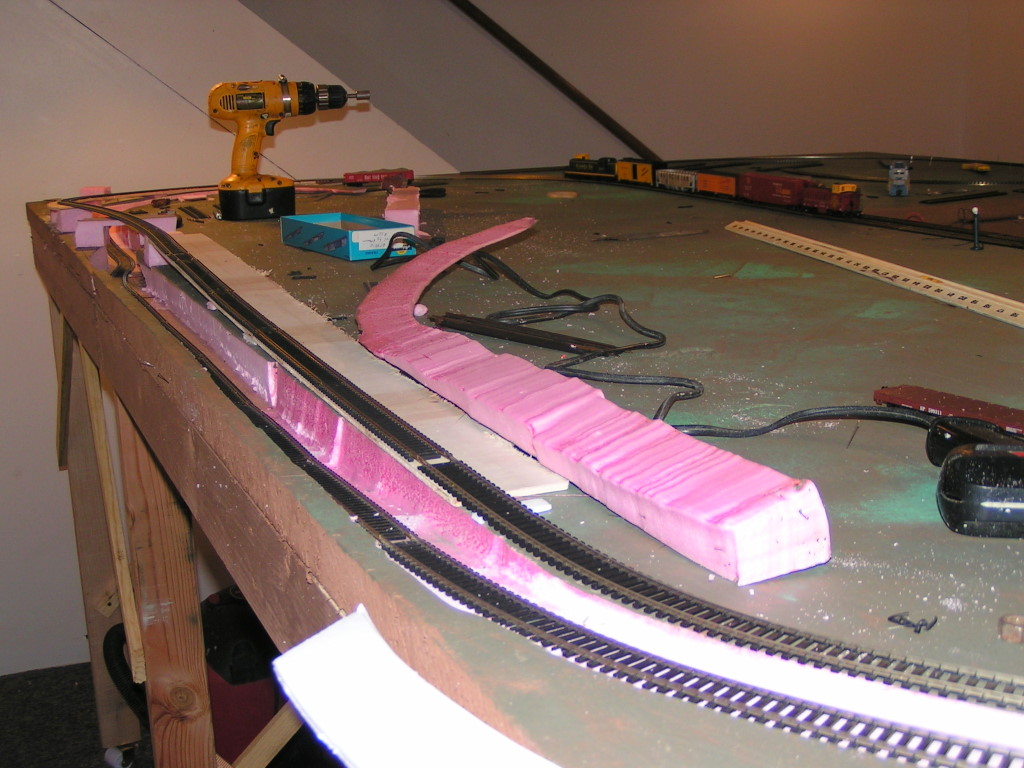 Also thinking on part of the road beds to cut a template the profile of a cork road bed and form a continuous bed using wood putty. This way i can give very slight and gradual changes in elevation