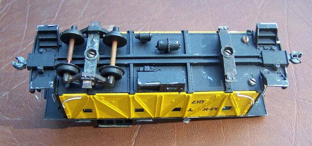 Hey, thanks for the ID, buddy. I thought it was(a nice find), too. I'll have to contact my junk-box buddy to see if he has one of those specially sprung trucks so I can complete the caboose to operational status.