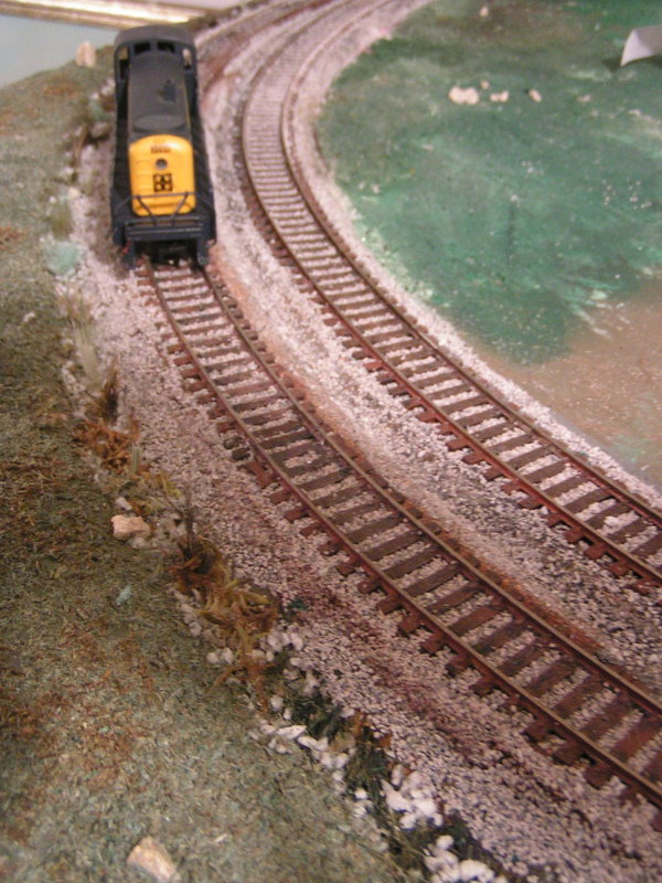 one more piece of track to attach and solder and i'm done for now. next comes hours of scenery, mountains, rivers, lakes, towns people, cows, farms.