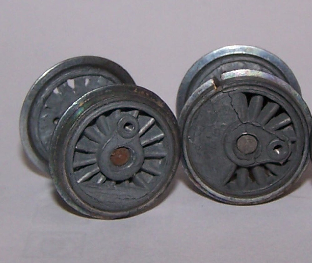 That's the worst I've seen, Jerry. I got a box lot of Mantua parts that had an early Pacific frame I was really excited about, but it turned out to have mild zinc rot that stretched out the frame, and caused one of the drivers to short. The expanding wheel center pushed right through the insulating ring at the joint and made contact with the rim, and the rest of the drivers have a good bit of side-to-side wobble.