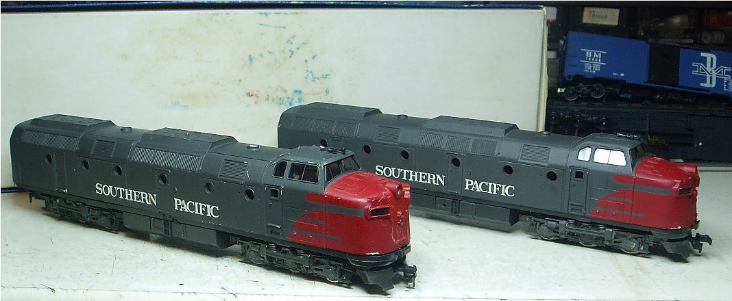 Da cheese : They are a powered and a nonpowered. They are strange for all I have seen before had SP on the front and a number above it below the light. Also on both side top ,rear was the number. These loco's have only the road name. frank