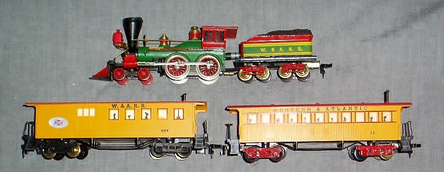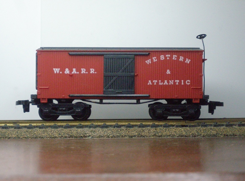 A old time box car Western and Atlantic. This is a newer one, with plactic trucks and no number. toptrain1