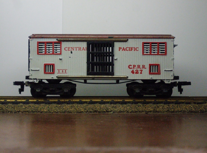 I started with some Tyco old time cars here is some more. A Central pcific Box Car. The old one with metal trucks and a factory number.