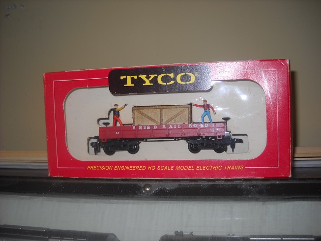 I don't like to remove things from boxes much, but here's one from the red box era. T318E:396 BPS&D "platform car" with figures.