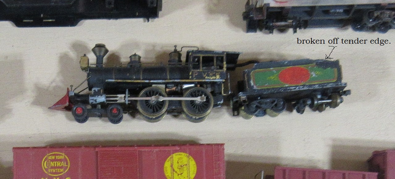 There was a discussion that the one in the catalog photo was the prototype. I just found this in a batch of train stuff I got on eBay. The logo is printed on and not a decal. Looks like Tyco produced two different locos/tenders for this set. If not, then I somehow got the prototype tender.
