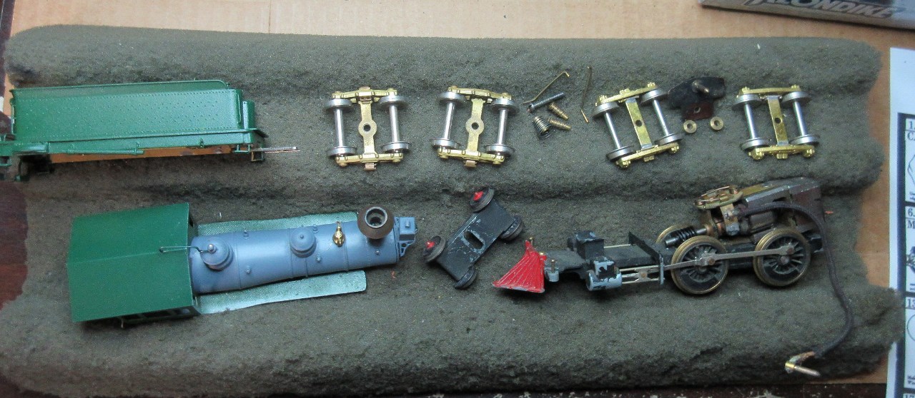 ** Now here it is mostly repaired and running. Still missing the boiler to pilot bars, and a broken off tender step. Now I have 3 locomotives and only one set of passenger cars.