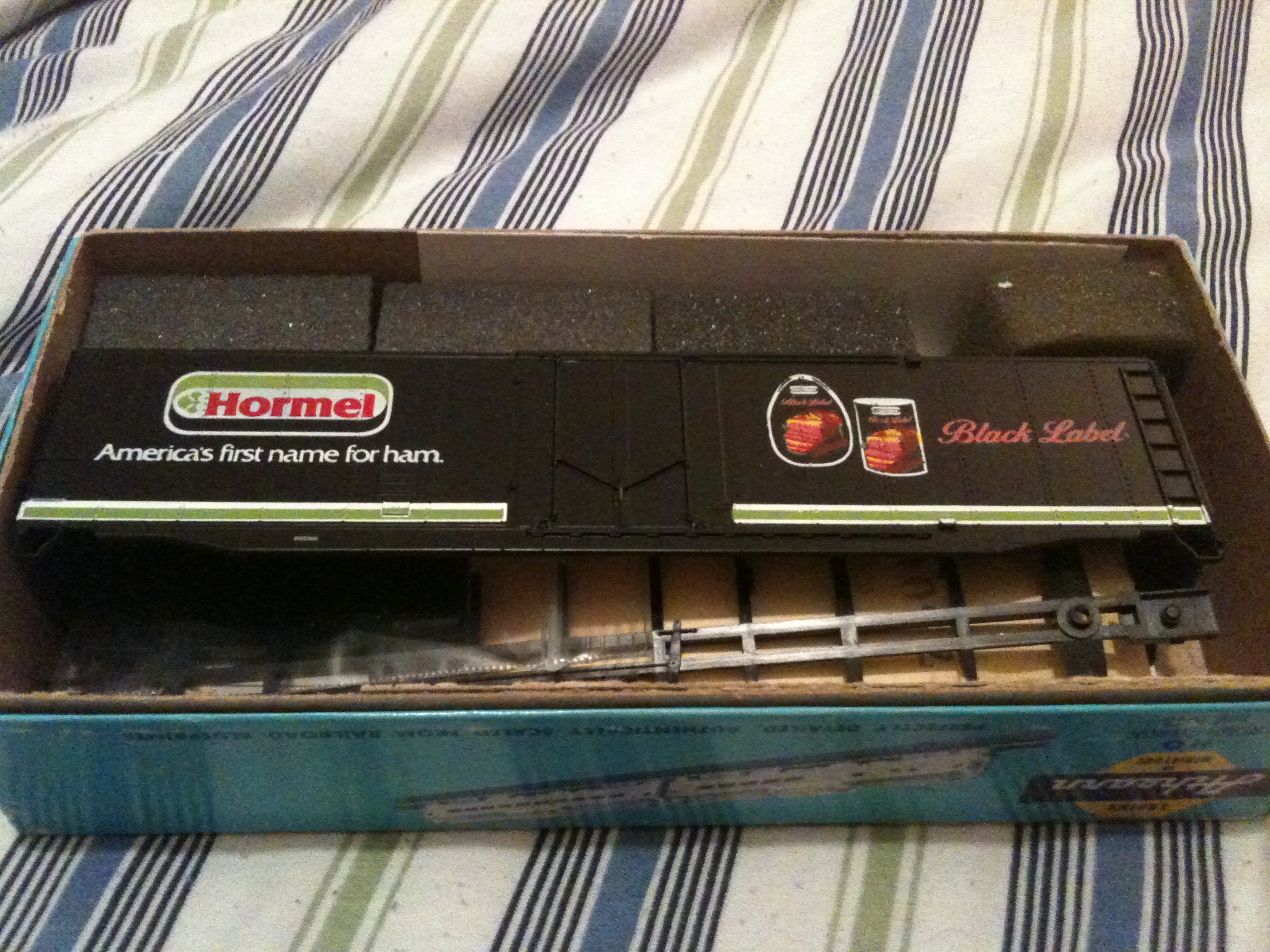 Just in time for the holiday season. An Athearn Hormel Black label ham 50' Plug Door Boxcar kit. Rare promo only car made for Hormel. Larry