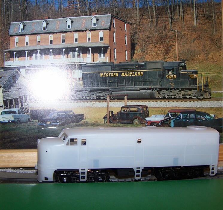Here's my LOTW, with my vintage Train-Miniature unpainted shell on a new Walthers Trainline FA-1 chassis. I'm going to use this to head up my Ghost Train consist, currently 3 TM boxcars, and an unpainted Bachmann white caboose. All will receive green LED lights inside for that ghostly glowing effect.