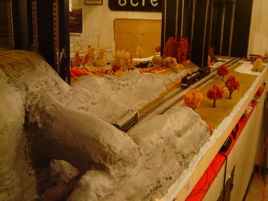 Here's the other end of the extension. This is the end where the trains enter from the main layout. When I was younger I remember seeing a layout with a nice rock arch on it for the trains to pass through...that's where I borrowed the idea for this section from