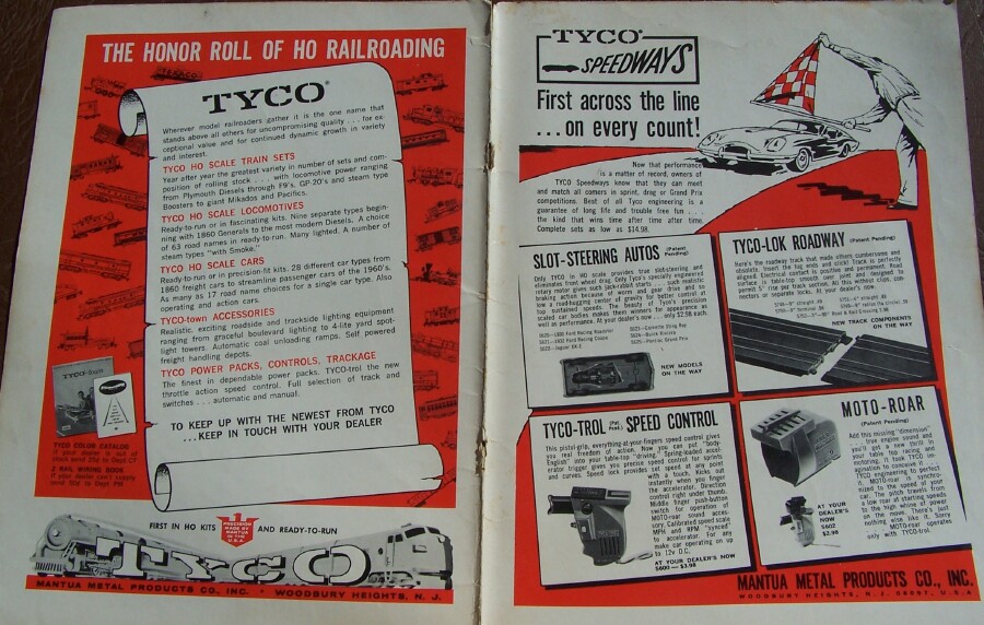 Here's the inside of the cover, which came off the magazine. Both Tyco ads, one for trains, one for slot cars. Neat!