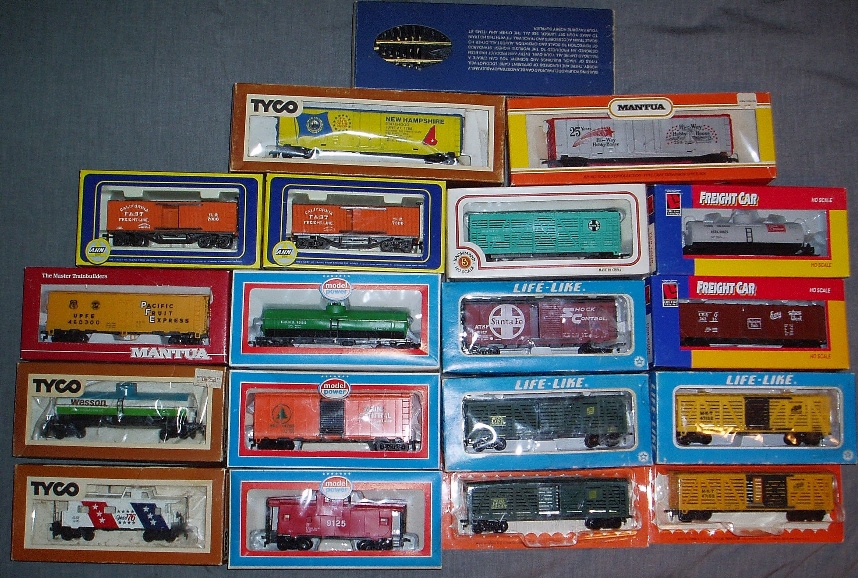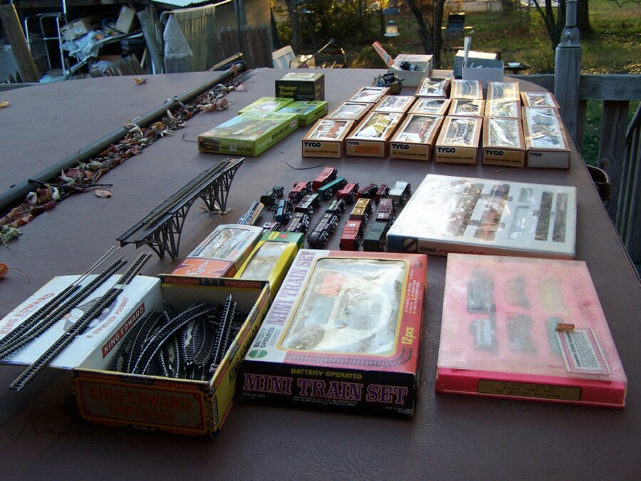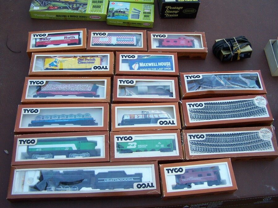 Here's all the Tyco stuff I got, and my first Chat 638, in a box WITH smoke-in-a-bottle! Woo-hoo! Choo-choo!