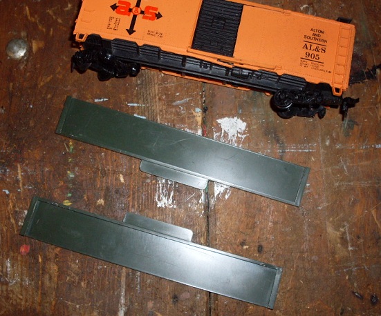 Anybody know what these two green pieces are? They were in a lot of rolling stock. The box car is for size reference: