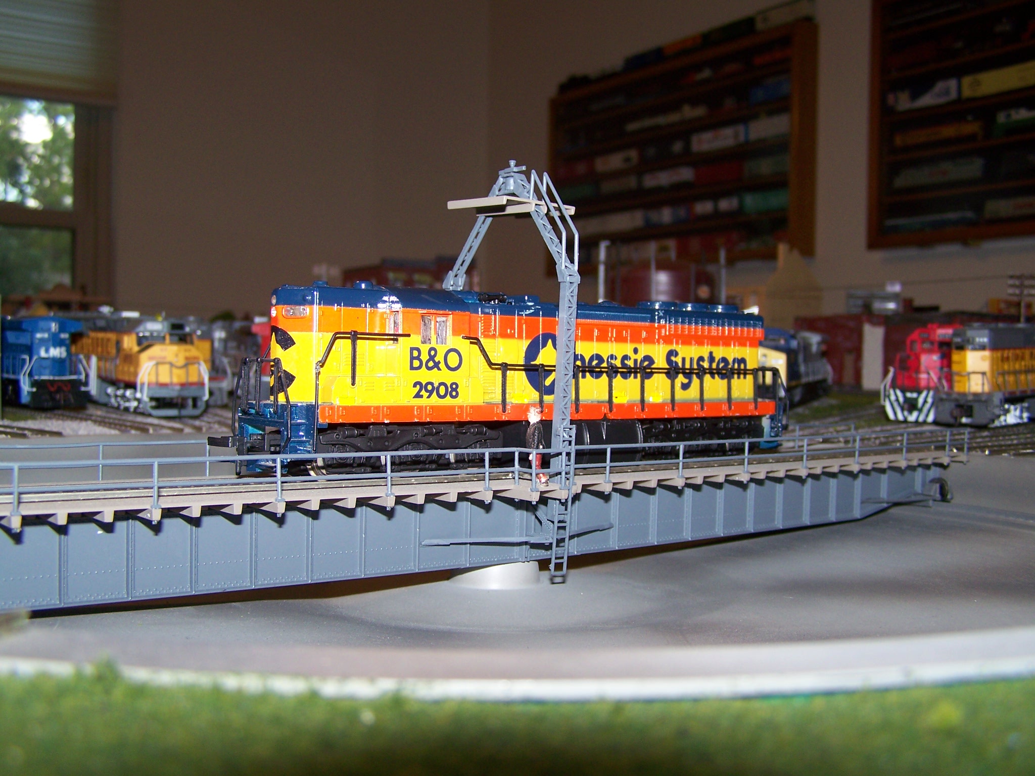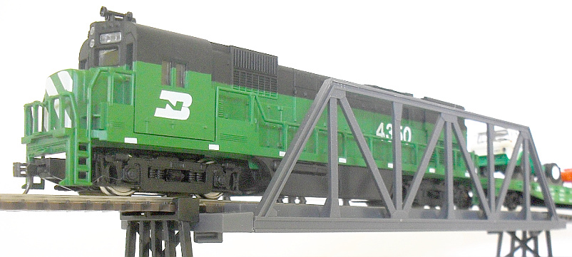 The Prime Mover! Mehano's Alco Century 430 is heavier and quieter than its early C628 stablemate but is spoiled by an absolute howler. As luck would have it, the offending goofiness is mostly covered here by a bridge. What are the chances! Still, if it quacks like a duck... So I'm not the biggest fan of merged railroads, the Chessie System excepted of course. However, I like the Burlington Northern because the name is smooth and cascade green is cool for cats.