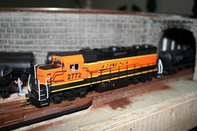 I'm happy to share my shiny new BNSF GP38-2. It is from the atlas trainman line. I'm thrilled with it so far. It is so refreshing to have an engine I don't have to nudge all the time when it mysteriously stops.