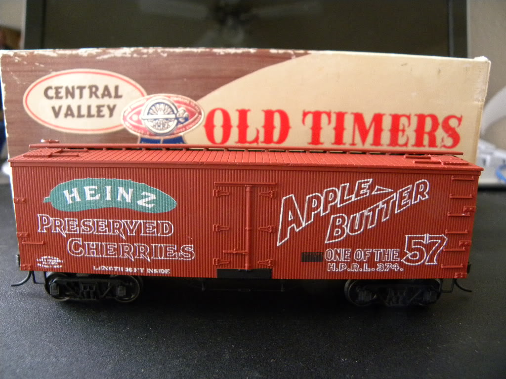 You won't find any of these at any train show. They are all custom made. The 36' cars are MDC Roundhouse cars that have been stripped, repainted, and decaled. The Pickle/Vinegar cars are Athearn's that have received the same treatment.