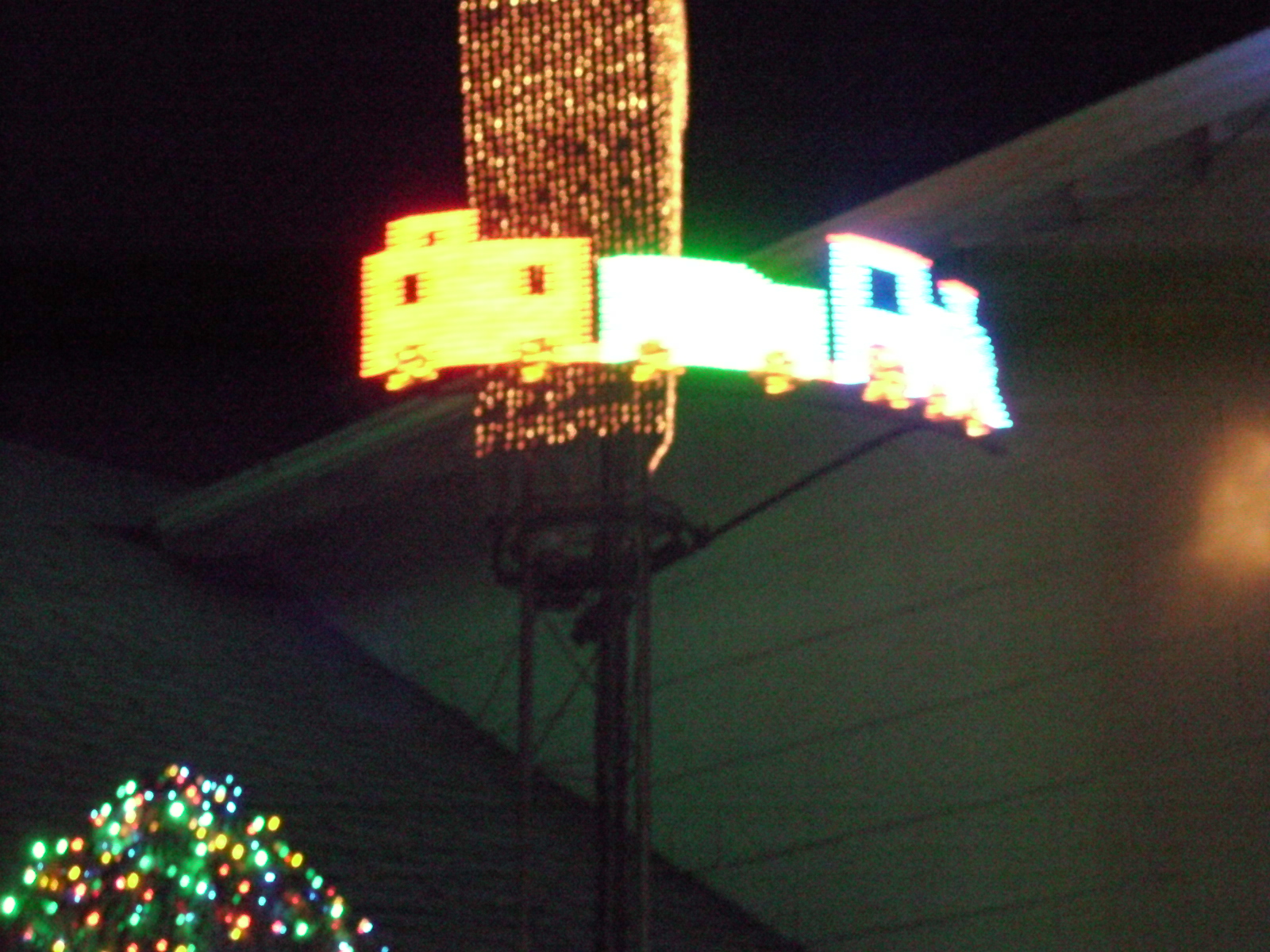 In 2009 I kitbashed an O-scale feed mill and a discarded holiday point-of-sales display from Lowe's, into a synchronized musical holiday freight station for the train of assorted O / O27 stuff I've cobbled together over the years.
