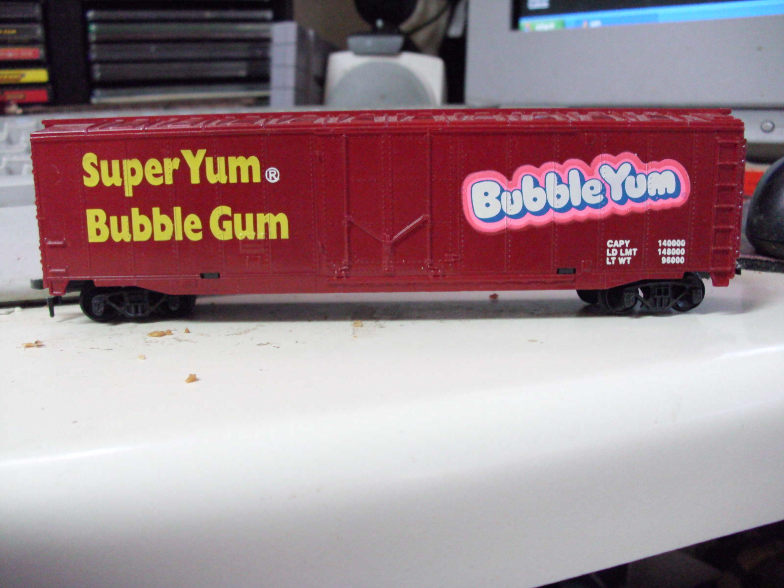 1- CP Boxcar, red variation, plug door 2- True Value trailer flat 3- BubbleYum boxcar or truck