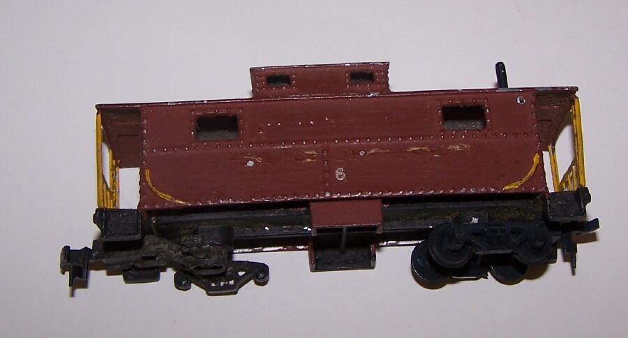 An AC Gilbert all-metal caboose, needs some new truck parts. Not sure if it's been repainted, or was crude like it shows. Paint looks thick.