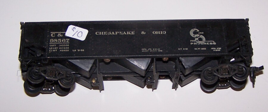 C&O hopper, all metal. Has operating doors. No maker listed, can anyone ID it? Very nice shape.