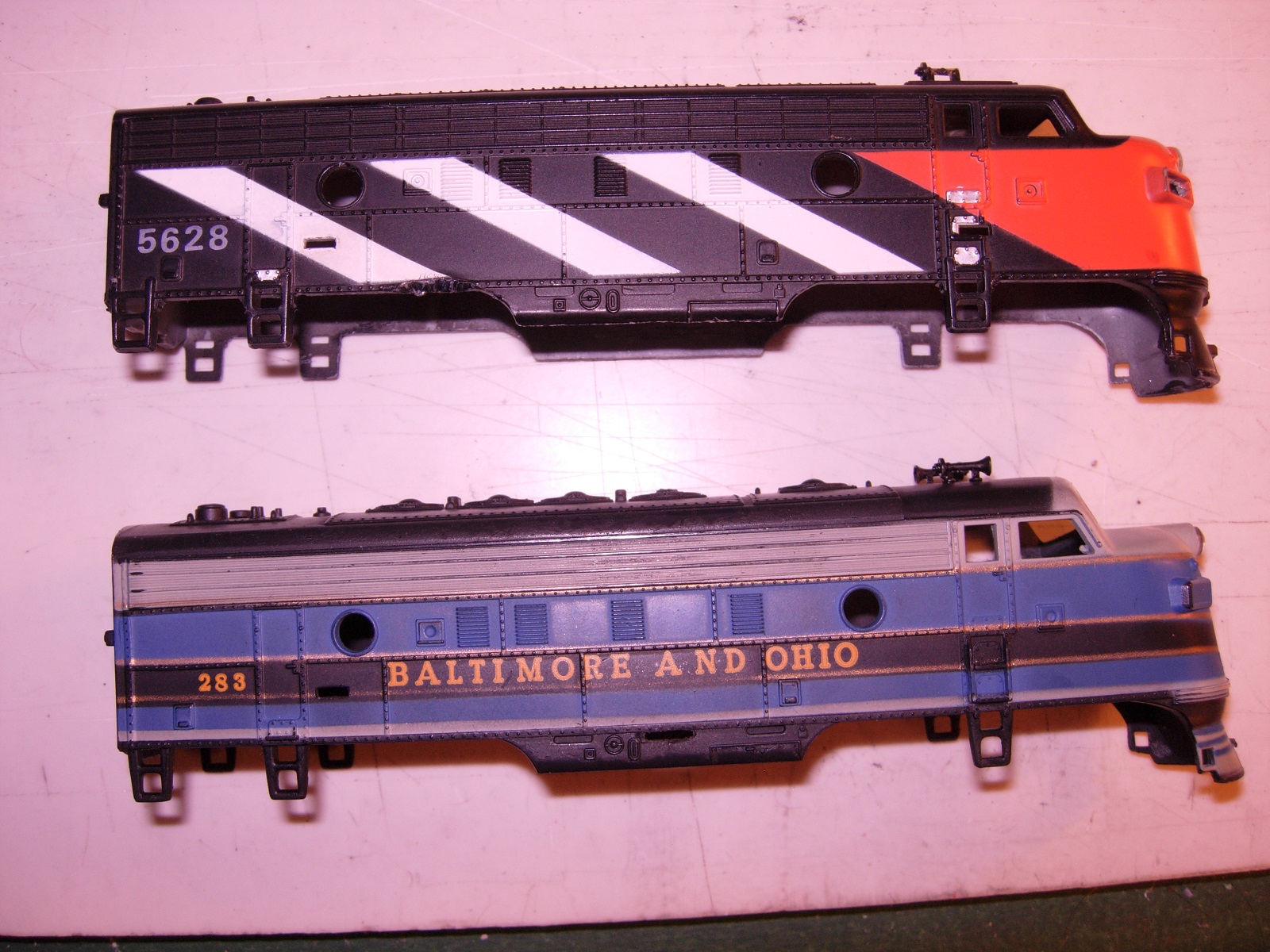 Frank, your cited examples provide a excellent lesson in contrasts. The B&O is indeed quite beautifully done: one of Tyco's better efforts in any loco they ever offered (that B&O was the first F7 roadname offered might have something to do with this). That Pennsy, OTOH, is an exercise in cheap minimalism: monochromatic except for a paucity of striping, I even have a freight (brown) version which is an unpainted shell. It may be authentic, but it certainly is cheap... and cheap-looking.