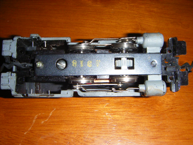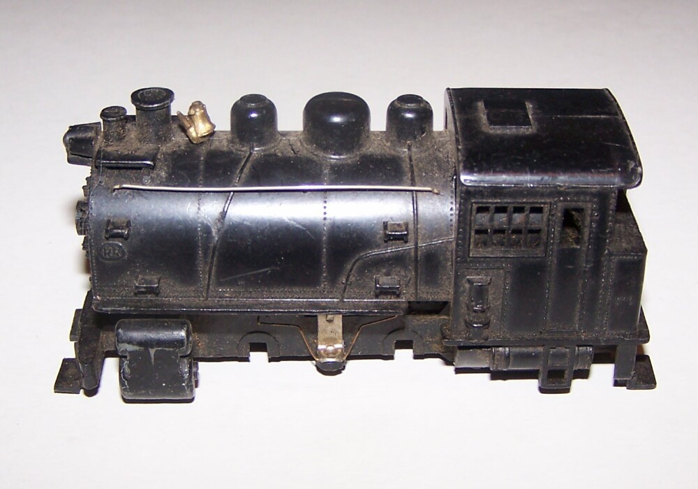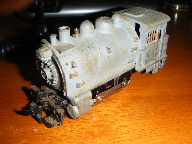 I pulled this off of the top of my neighbor's trash can. It's the dirtiest engine I ever had and it has a split drive gear on the axle. I pulled the body off, gave it a quick scrubbing & lube. The motor runs great and I'm waiting for Yardbird Trains to get back to me on a replacement gear. When I clean it up, paint it and replace the rails, it should turn out a pretty nice little lokie.