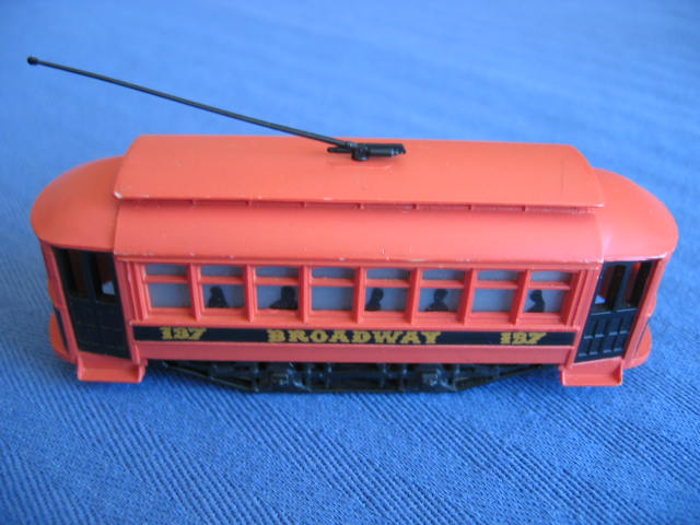 I found this Tyco Broadway Trolley on Sat. I bought it, because I have never seen a painted version as most were produced in orange colored plastic.